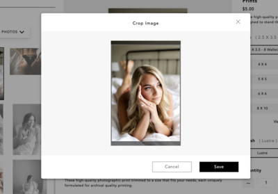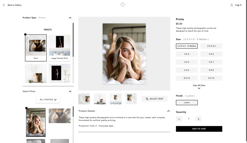 In the next few pages, I am going to walk you through the "shop" portion of your boudoir gallery. This is where you can find prints, photo books, canvases, and more directly through my professional printer!