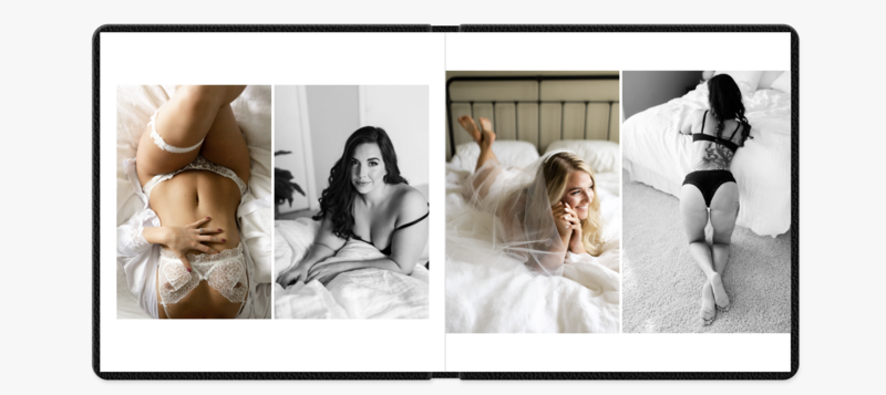 One of my personal favorite ways to print boudoir images is in an album or photo book. They are such an elegant way to look through your images and make an amazing gift for your significant other! They are also the most customizable option - you can pick the cover material + color, plus you get to design all of the pages inside!